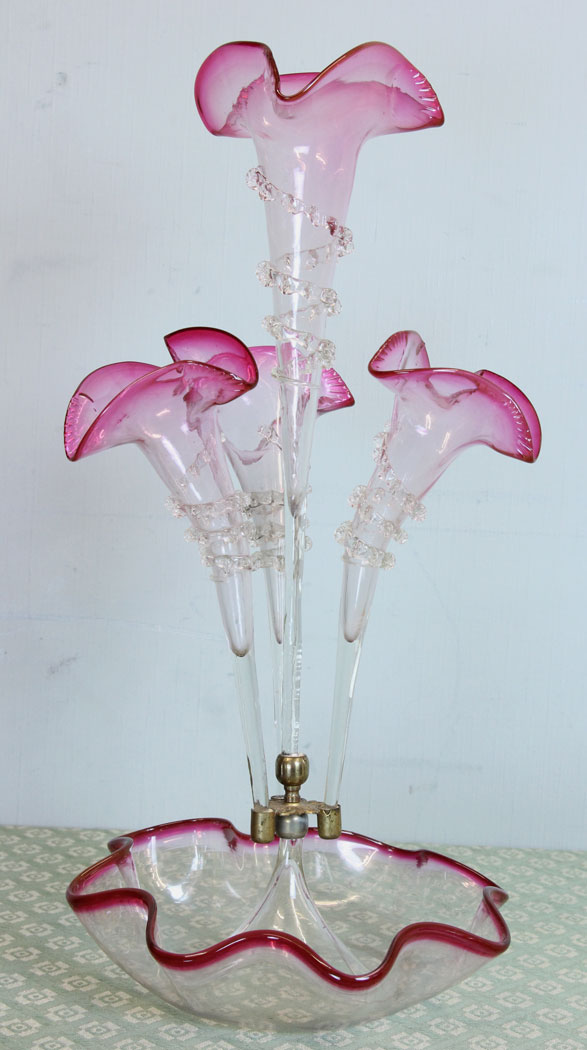 Antique Victorian Cranberry Glass Epergne / Table Centre Piece