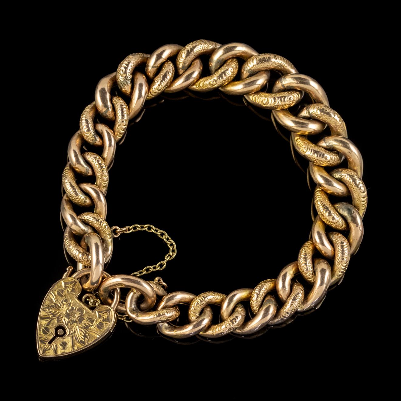 Antique Victorian Curb Bracelet 9ct Gold Heart Padlock c.1900