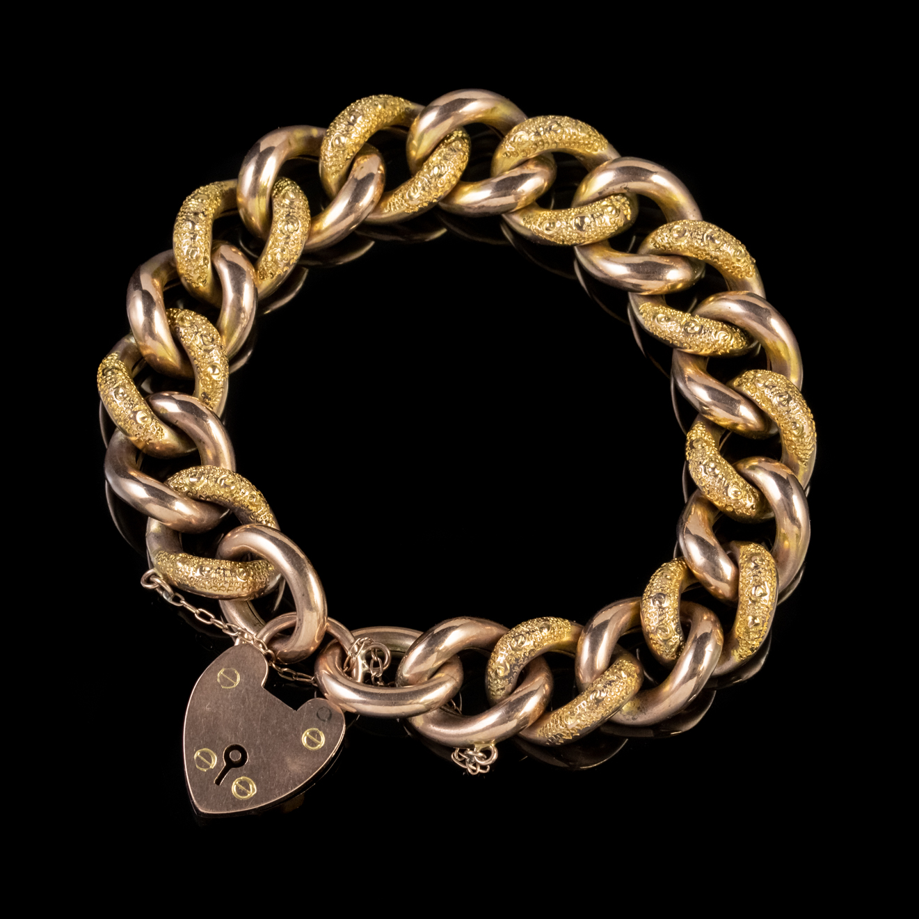 Antique Victorian Curb Bracelet Heart Padlock 9ct Gold circa 1900