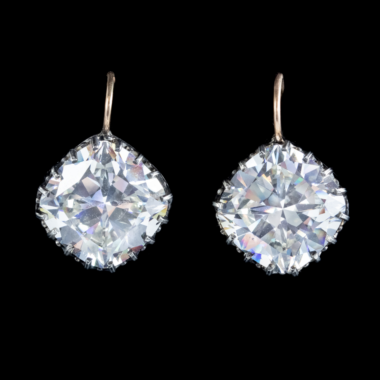 Antique Victorian Cushion Cut Paste Earrings Silver 18ct Gold 12ct of Paste c.1880
