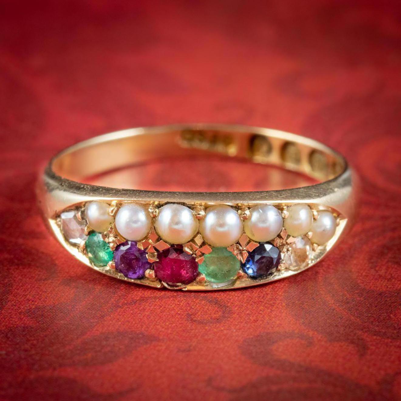 Antique Victorian Dearest Gemstone Ring 18ct Gold Dated 1889