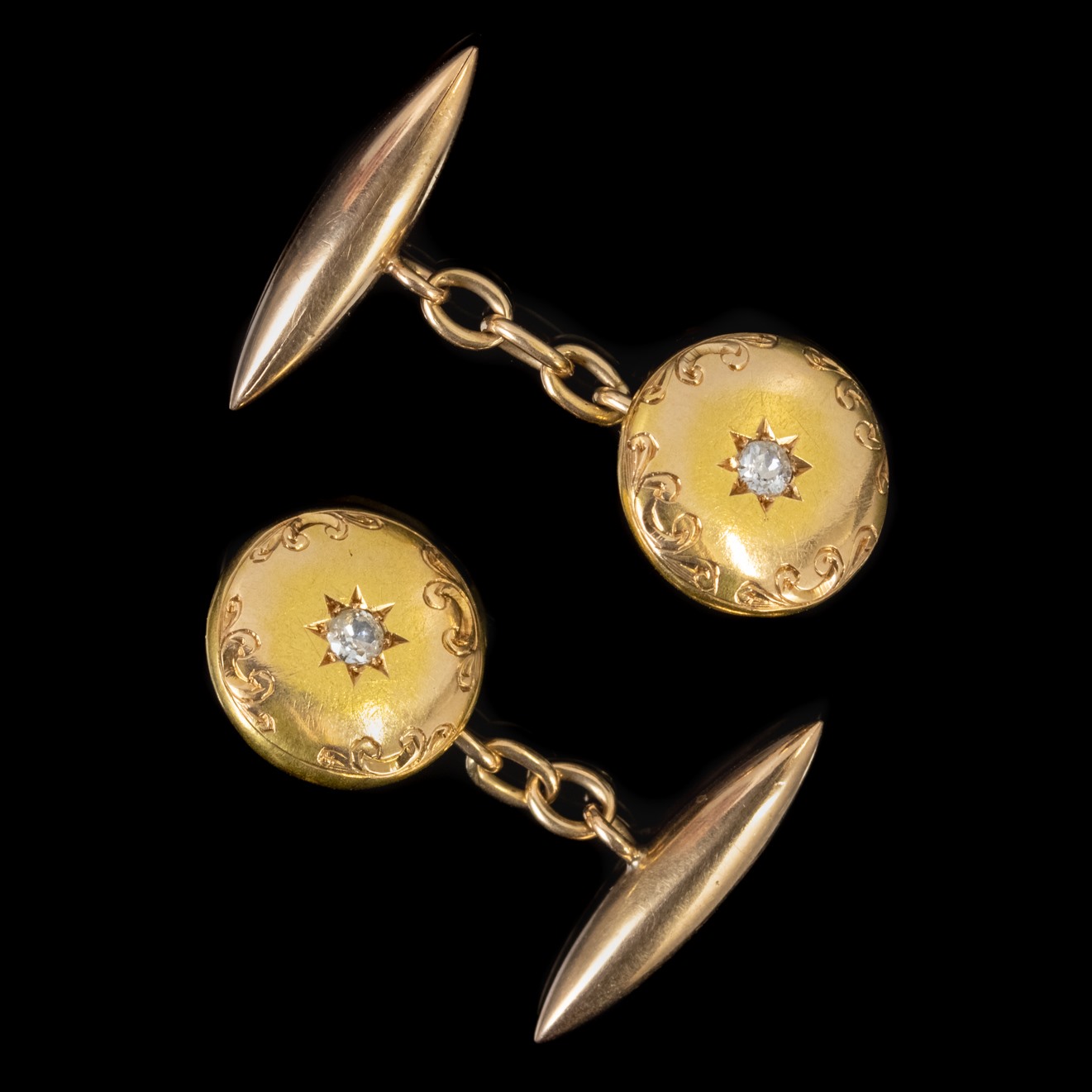Antique Victorian Diamond Cufflinks 15ct Gold C.1880