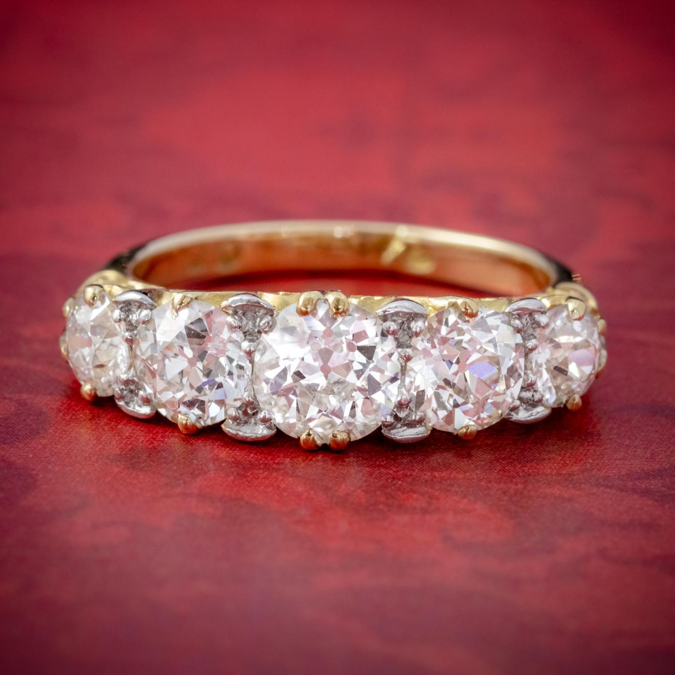 Antique Victorian Diamond Five Stone Ring 18ct Gold 3.09ct Diamonds c.1900 Cert