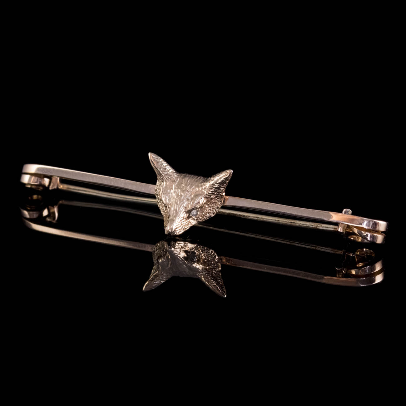 Antique Victorian Diamond Fox Pin Brooch 9ct Gold c.1900
