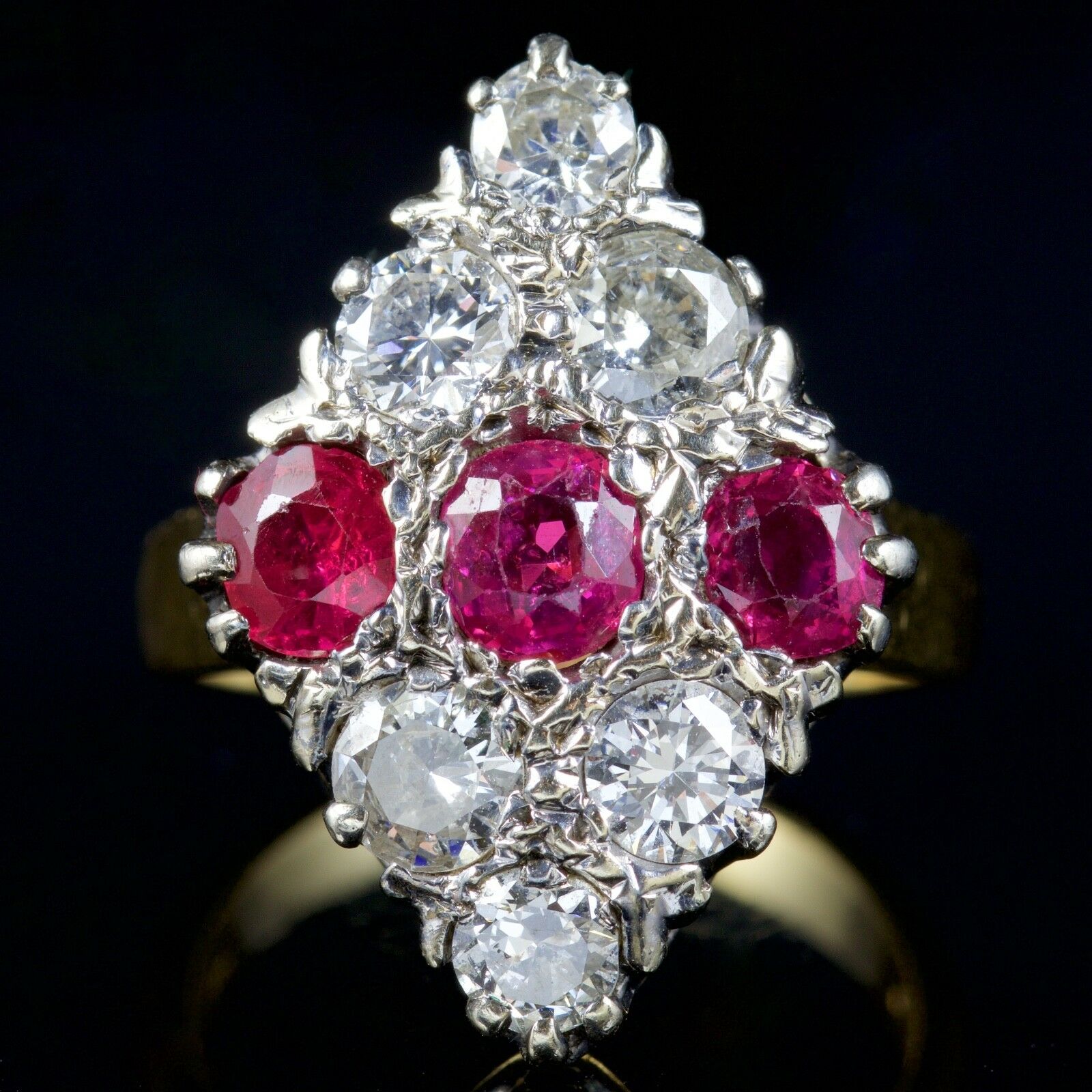 Antique Victorian Diamond Ruby Marquise Ring 18ct Gold c.1900