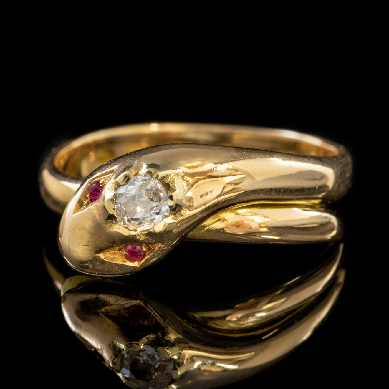 Antique Victorian Diamond Ruby Snake Ring 18ct Gold Dated 1871