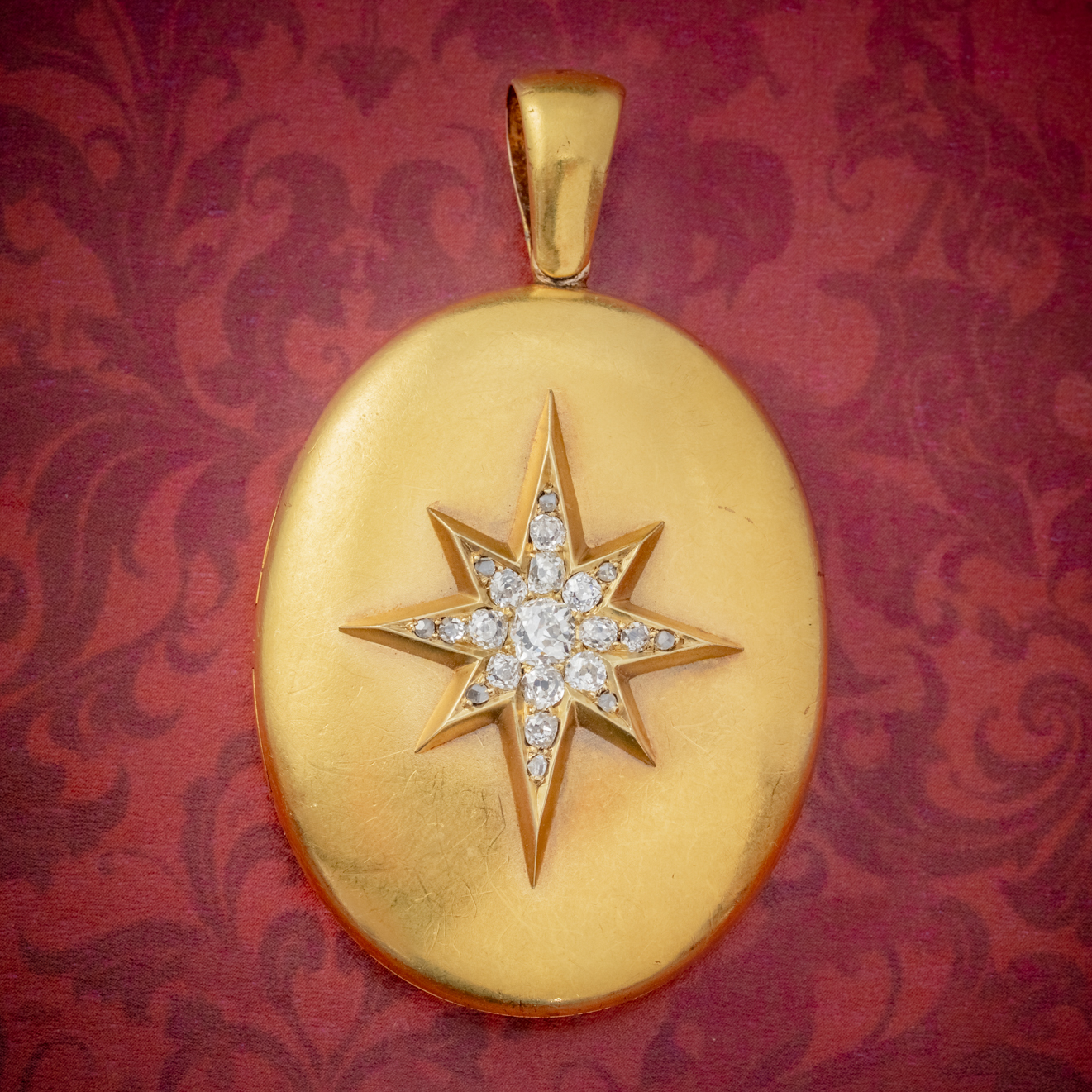 Antique Victorian Diamond Star Locket 18ct Gold 1.30ct Old Cut Diamonds c.1900
