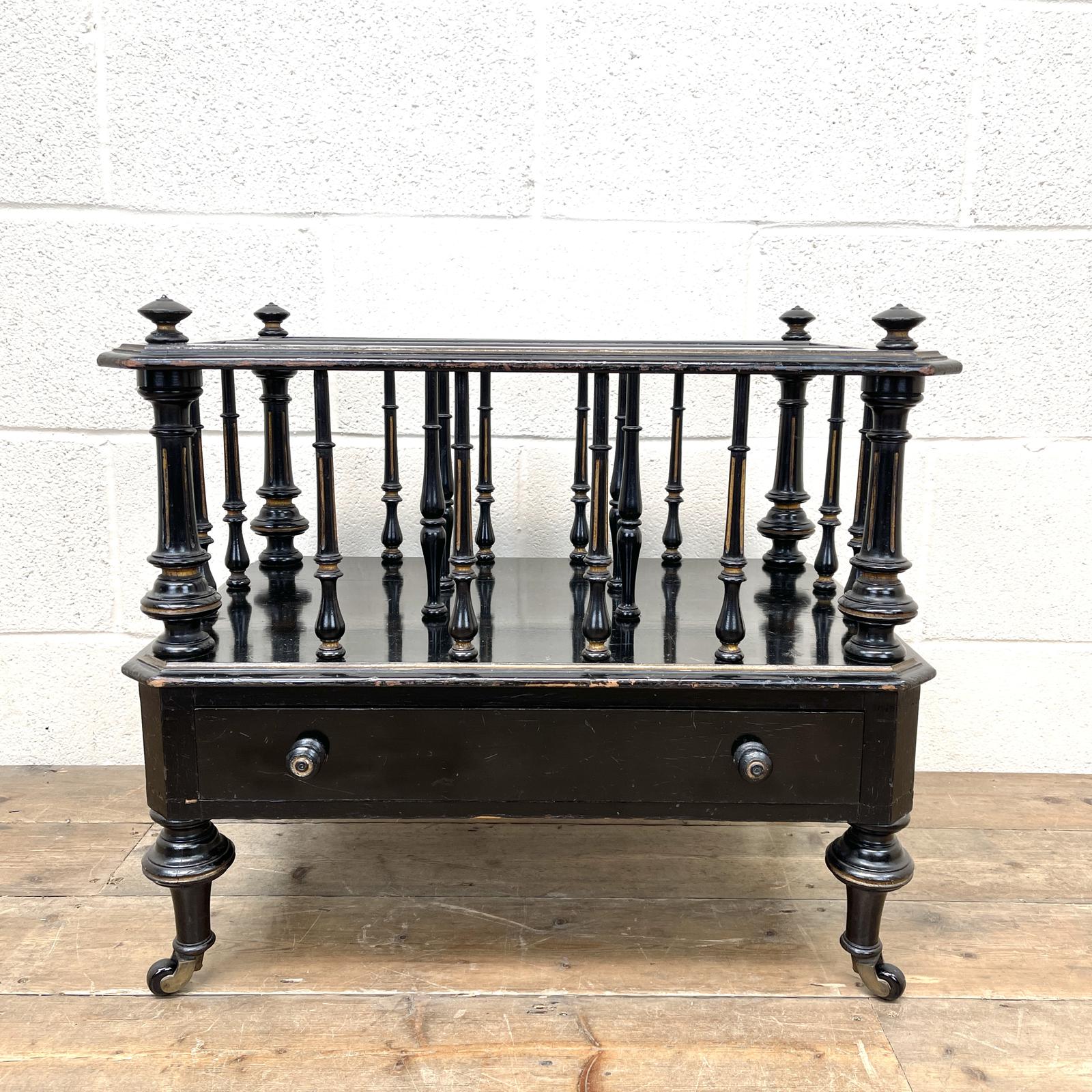 Antique Victorian Ebonised Canterbury Magazine Rack