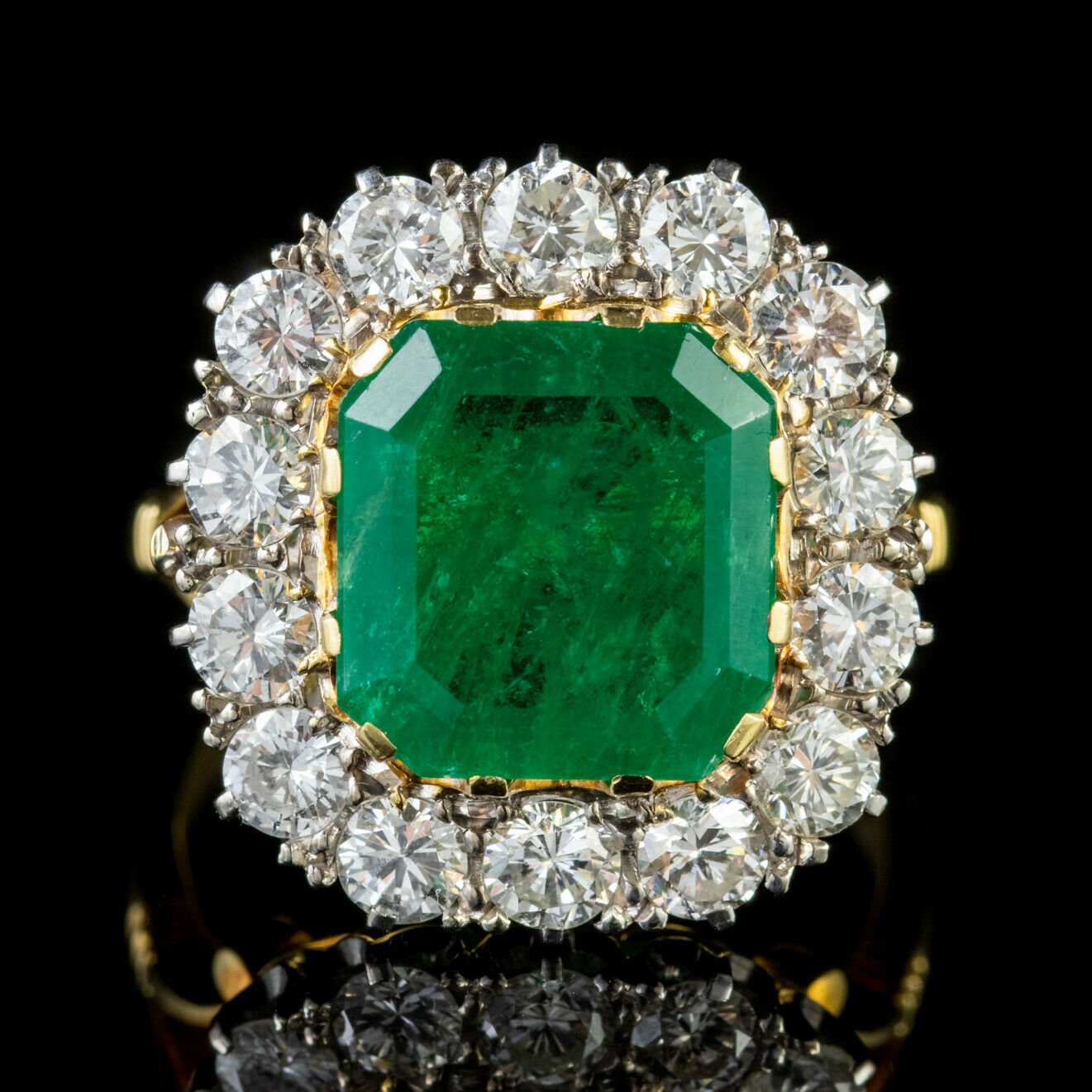 Antique Victorian Emerald Diamond Cluster Ring 18ct Gold 4.50ct Emerald c.1900