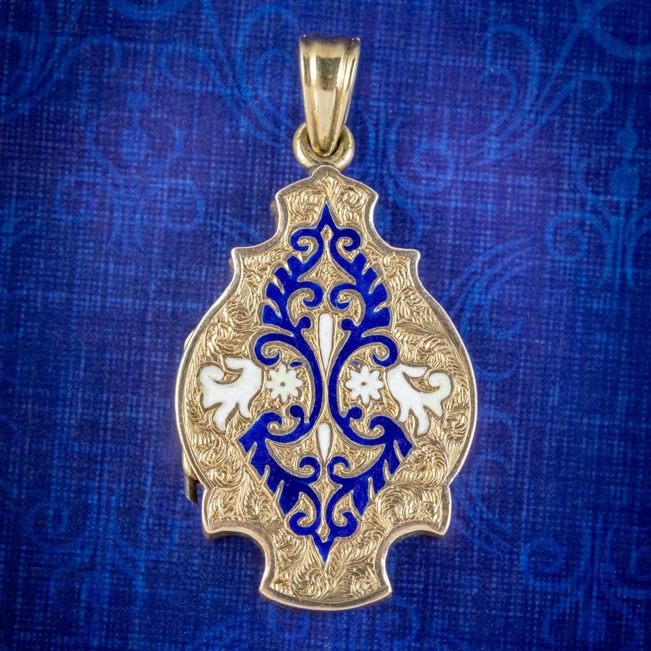 Antique Victorian Enamel Locket 15ct Gold c.1890