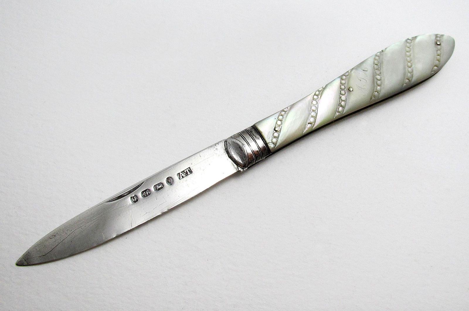 Antique Victorian English Sterling Silver & Mother of Pearl Fruit Knife - Alfred Taylor