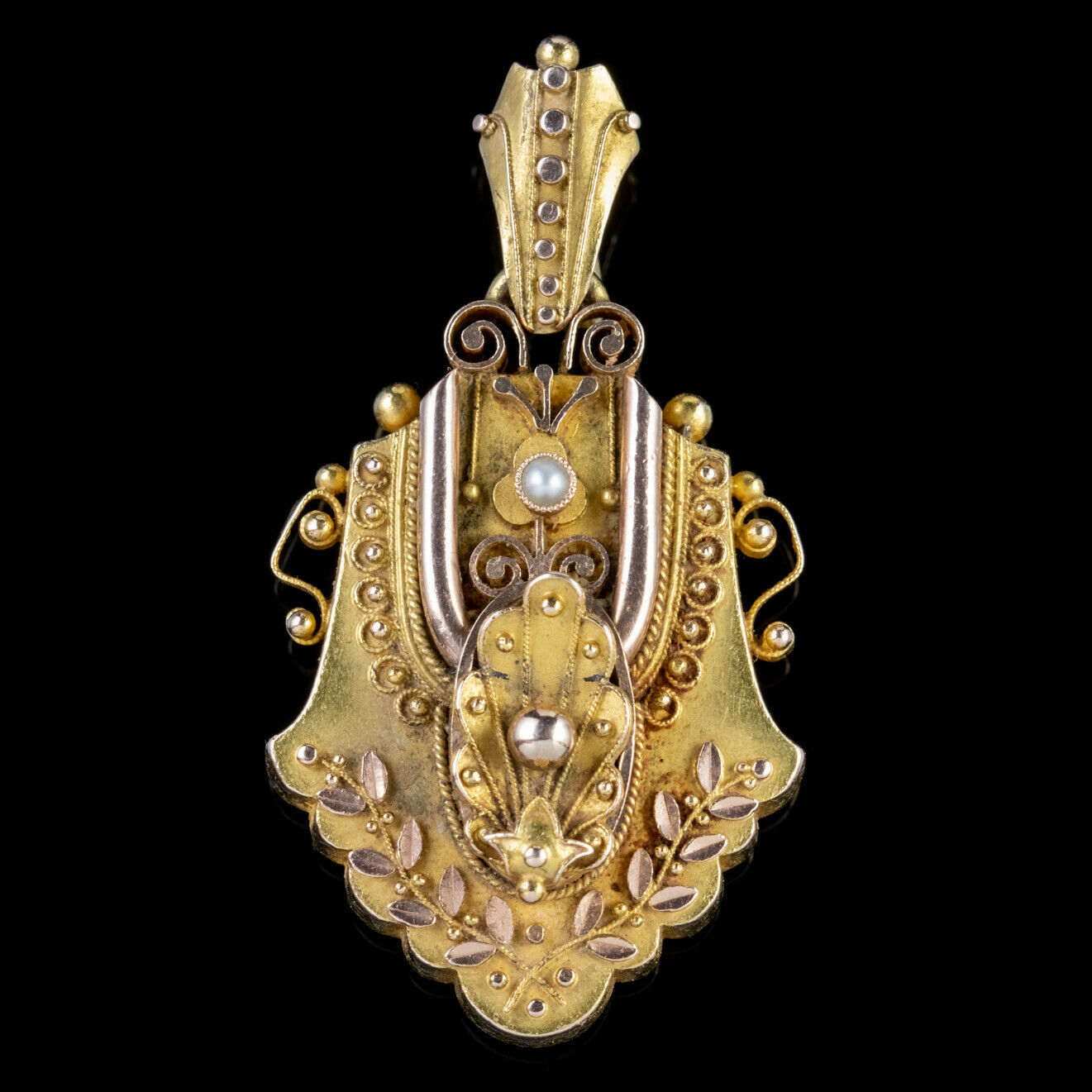 Antique Victorian Etruscan Locket Pendant 18ct Gold circa 1880