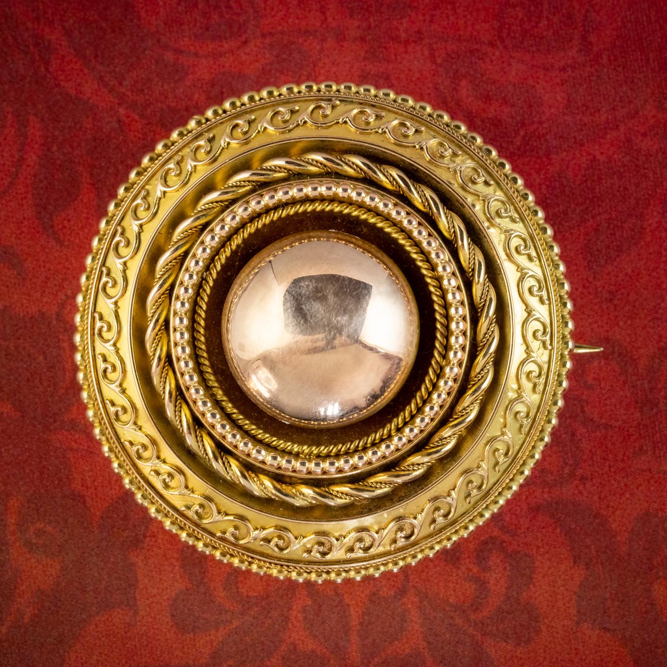 Antique Victorian Etruscan Revival Brooch Locket 18ct Gold Circa 1880