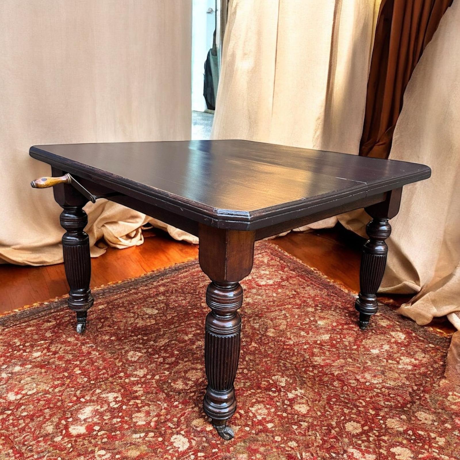 Antique Victorian Extending Dinning Table / 19th Century / Seats 4-8