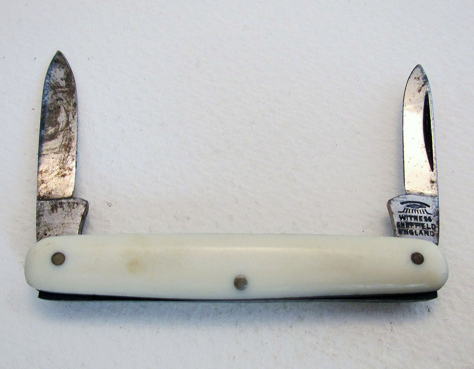Antique Victorian 'Eye' Witness Sheffield Double Folding Pocket Quill Cutter Pen Fruit Knife Penknife Pencil Sharpener C.1890