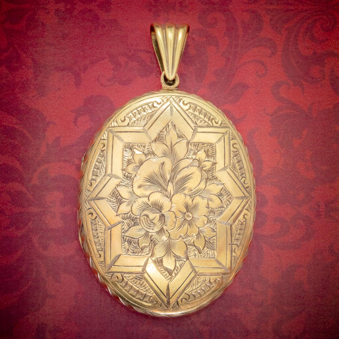 Antique Victorian Floral Locket Silver 18ct Gold Gilt c.1880