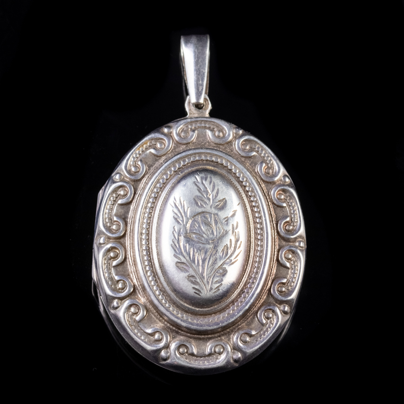 Antique Victorian Floral Locket Sterling Silver c.1880