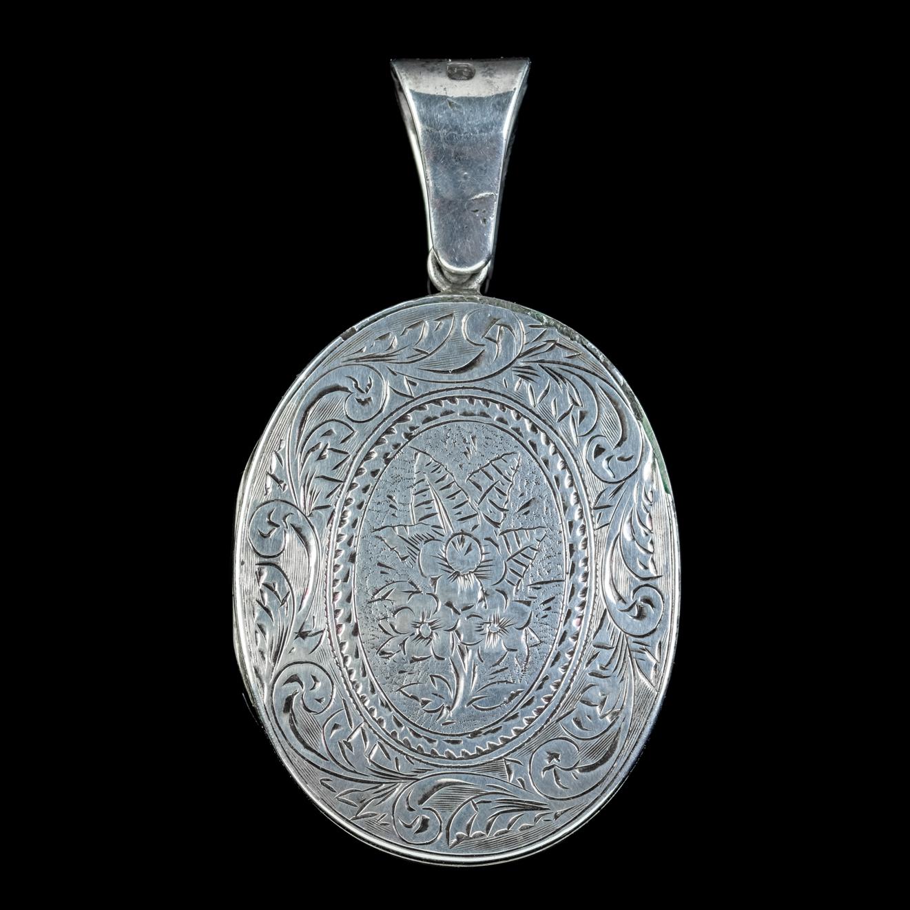 Antique Victorian Floral Locket Sterling Silver c.1880