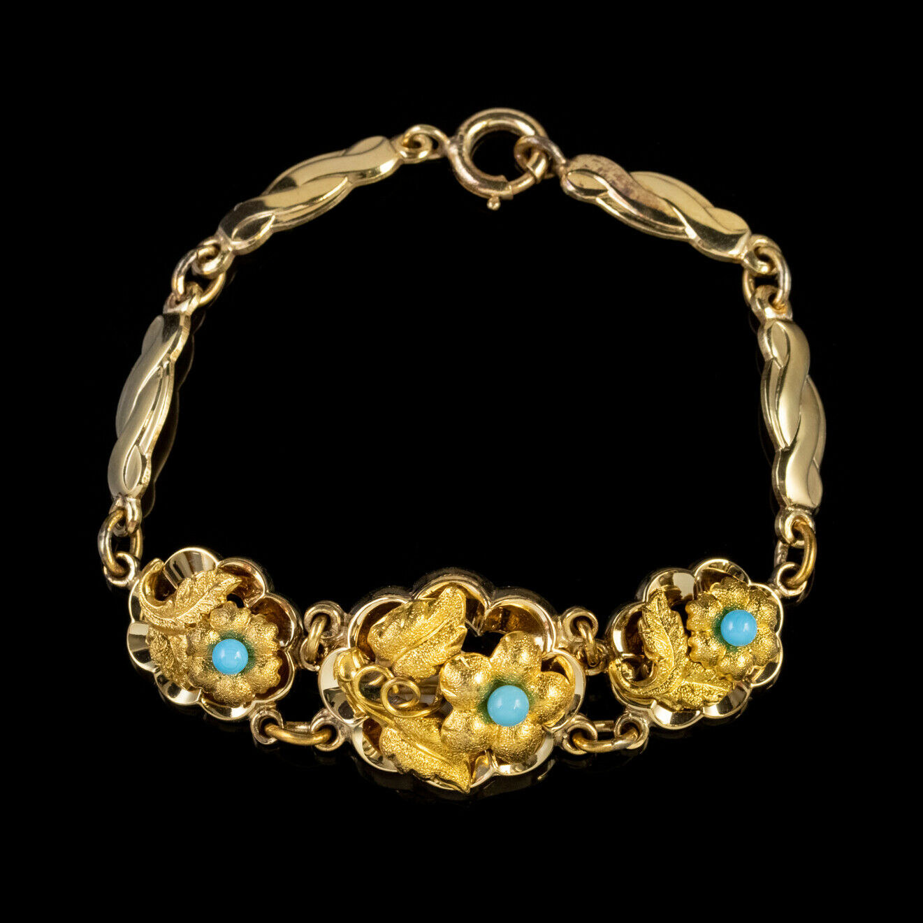 Antique Victorian Forget Me Not Bracelet 18ct Gold Gilt Silver c.1900