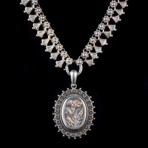Antique Victorian Forget Me Not Collar Locket 18ct Gold Silver Dated 1881
