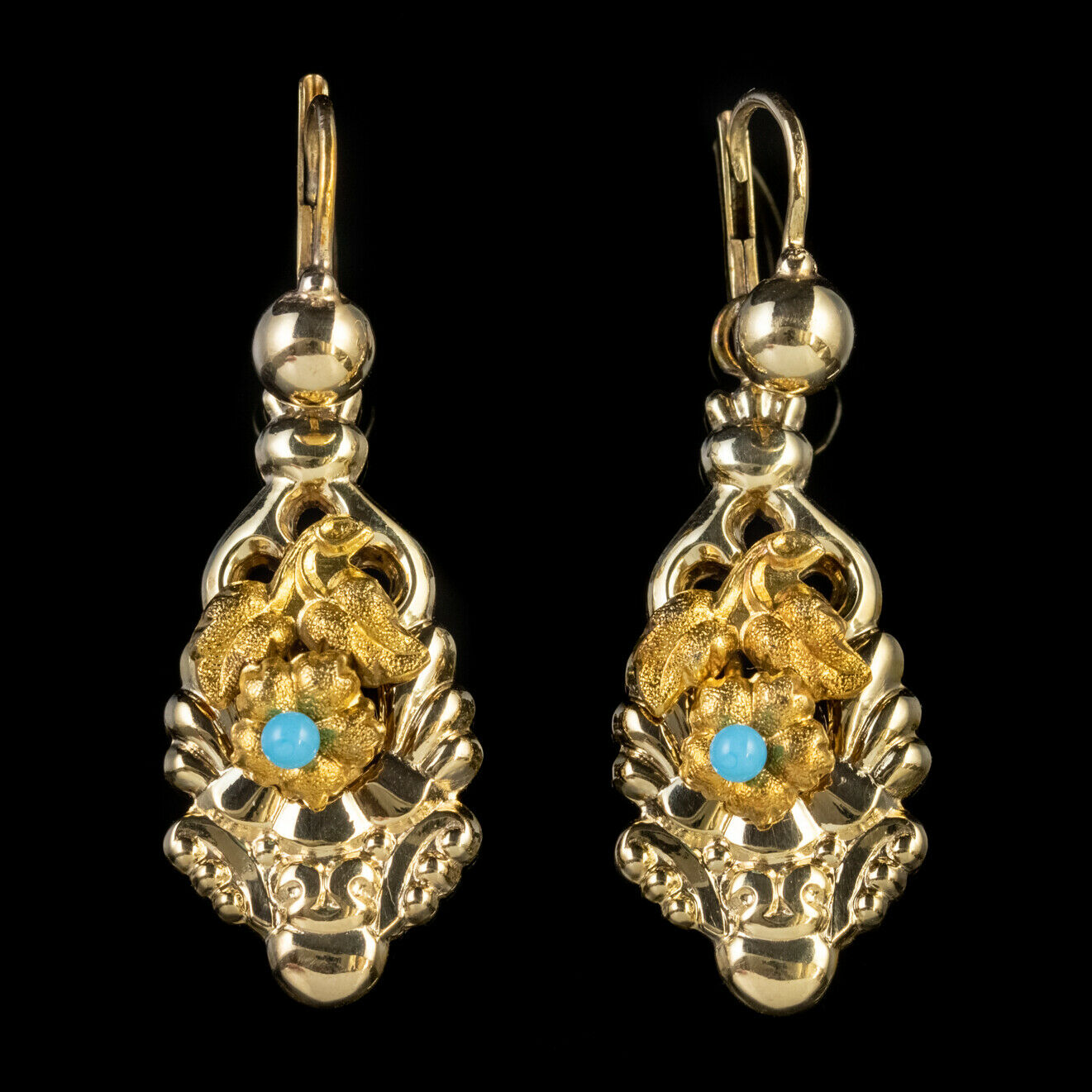 Antique Victorian Forget Me Not Earrings 18ct Gold Gilt Silver c.1900