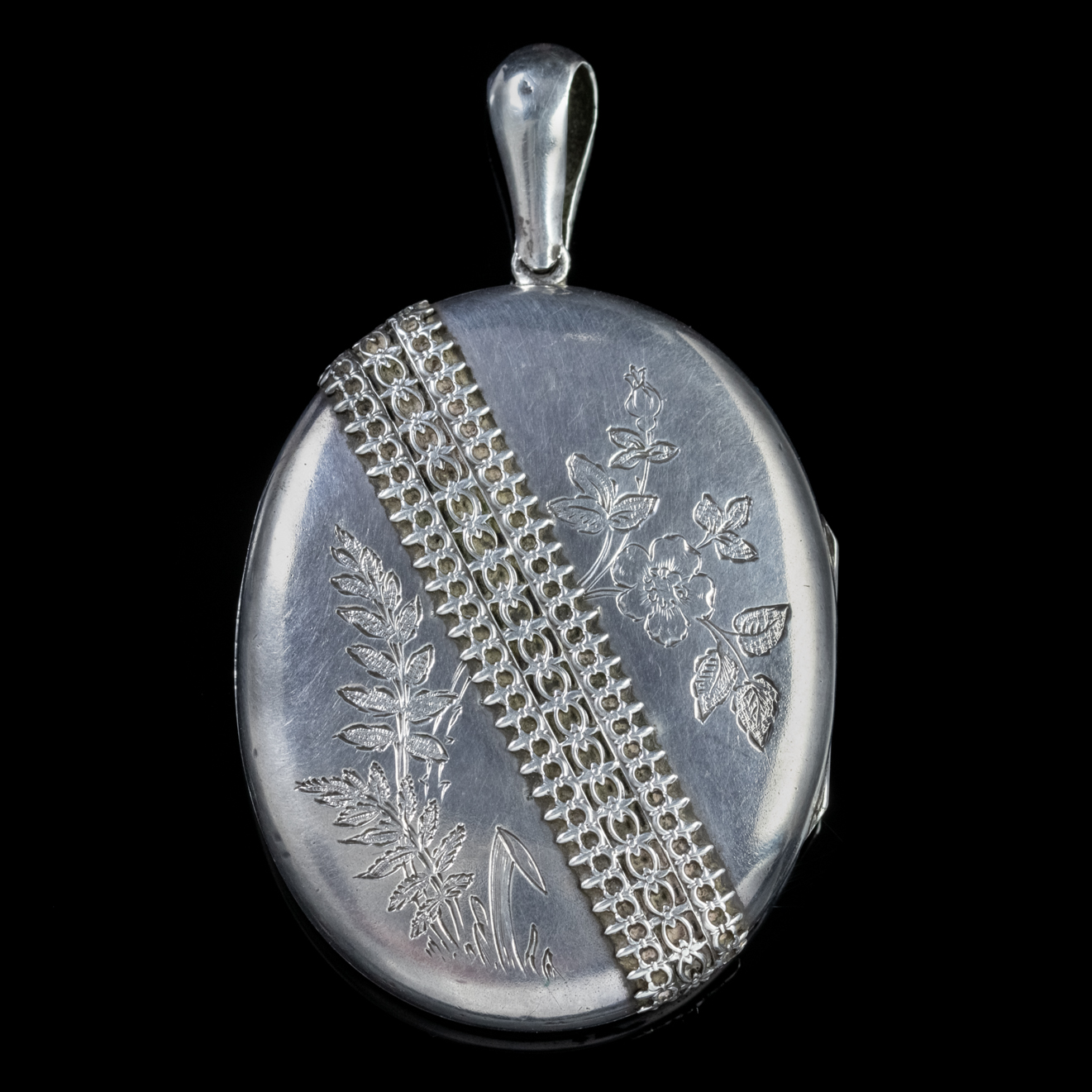 Antique Victorian 'Forget Me Not' Locket Sterling Silver c.1880
