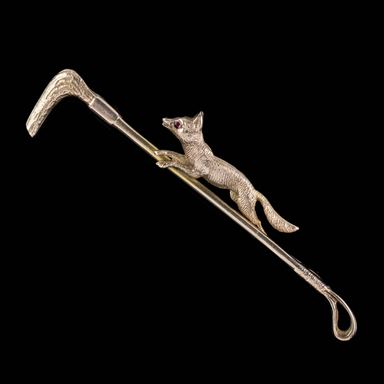 Antique Victorian Fox & Crop Riding Brooch 9ct Gold Dated 1873
