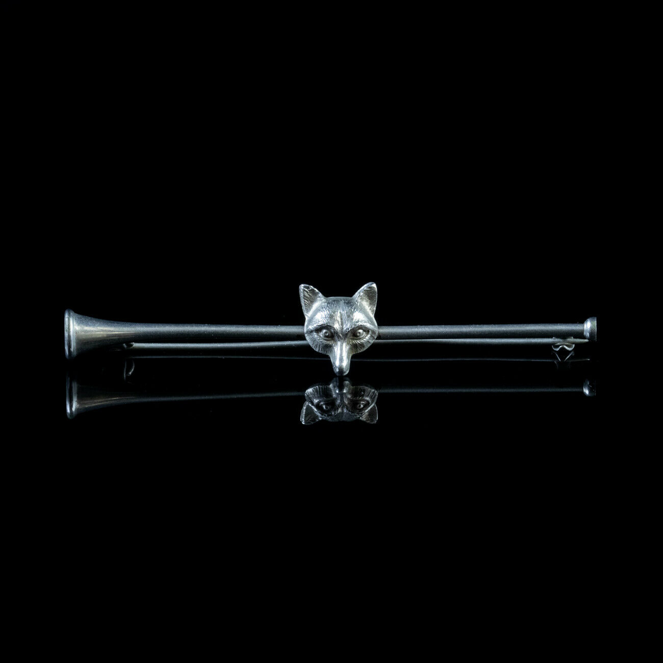 Antique Victorian Fox Horn Brooch Silver c.1900