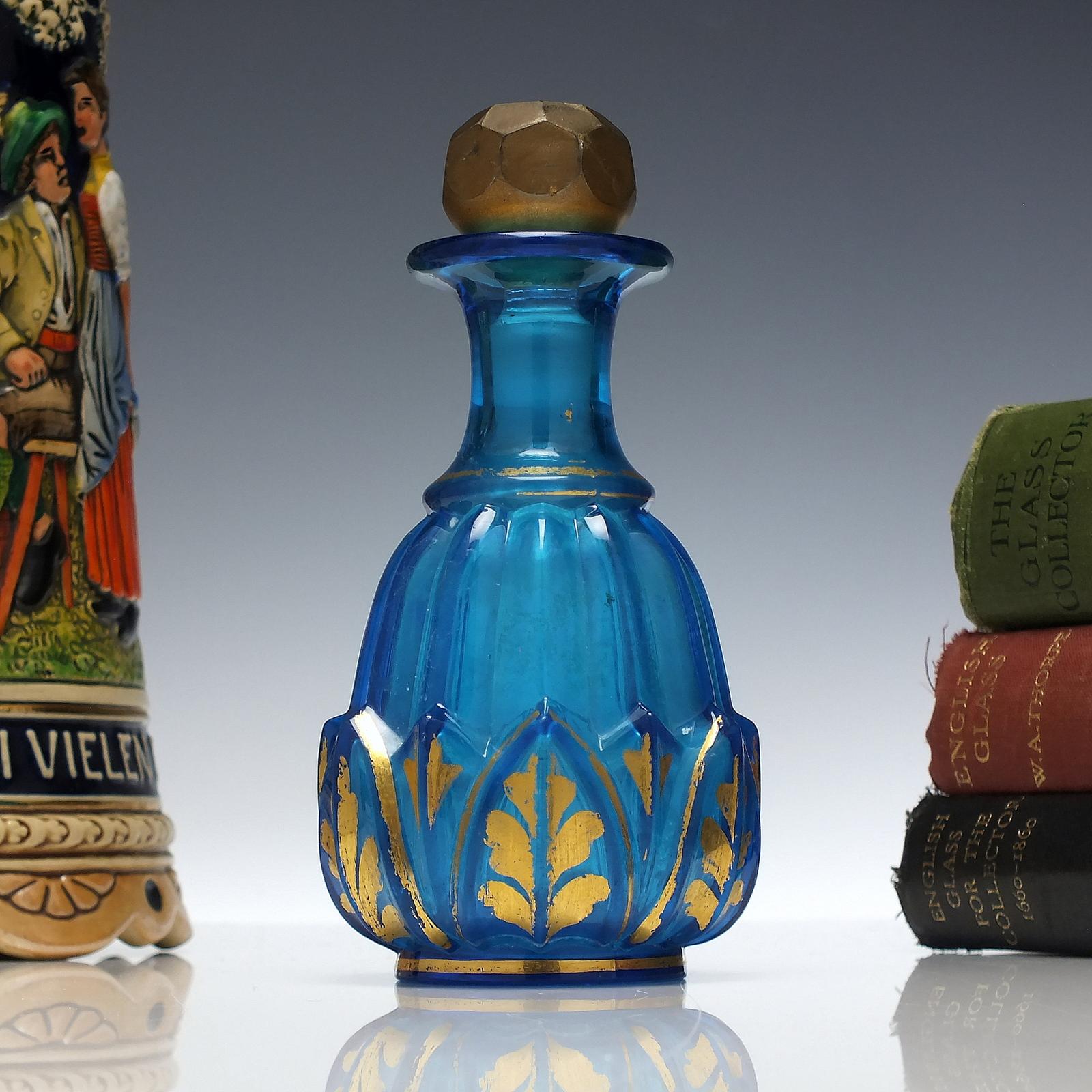 Antique Victorian French Gilded Blue Glas Perfume Bottle c.1860