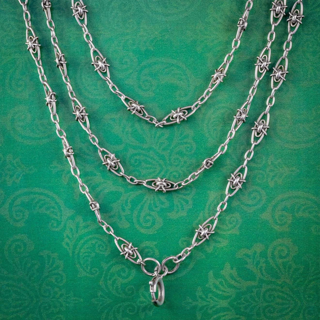 Antique Victorian French Guard Chain Necklace Silver Circa 1900