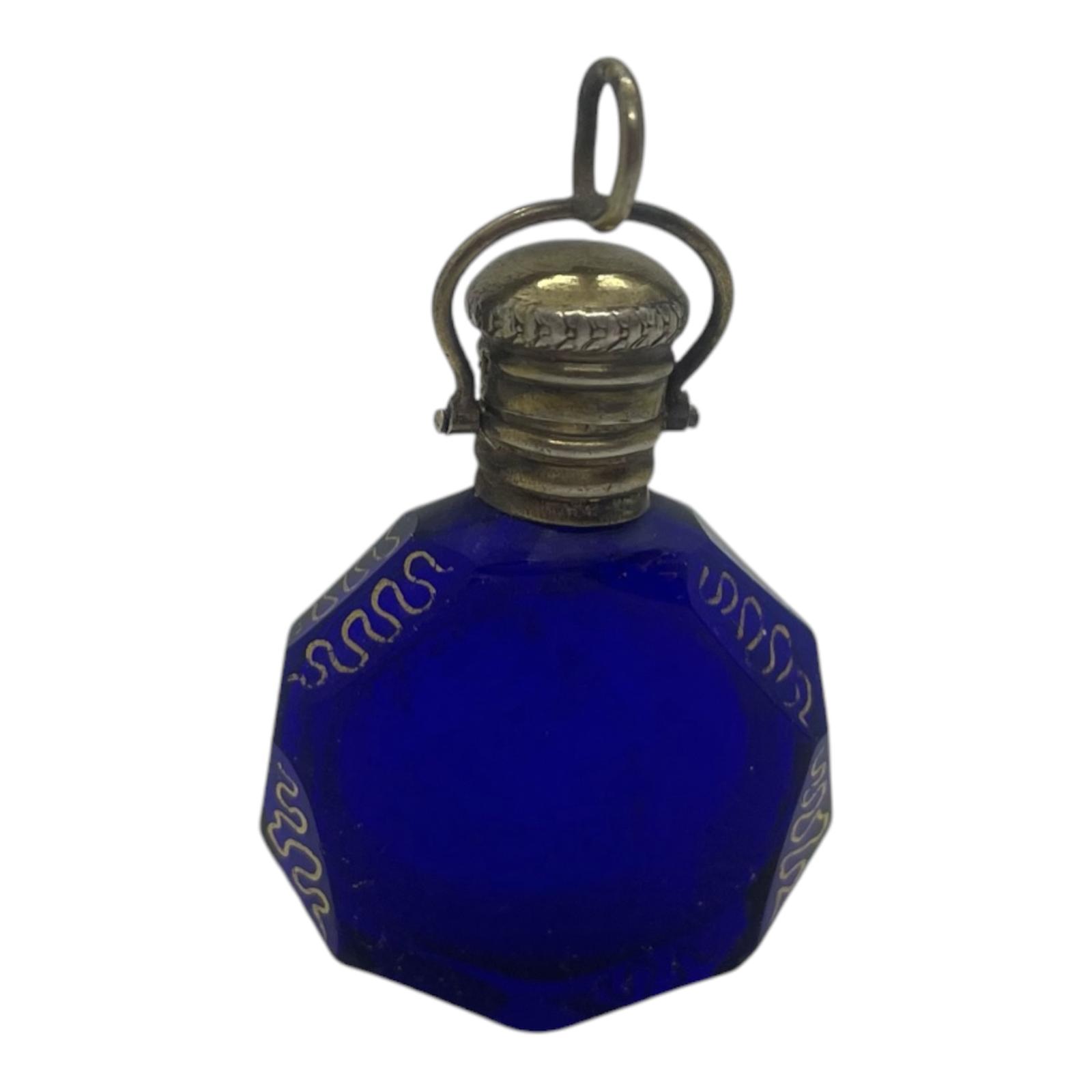 A beautiful miniature Bristol Blue, gilt, french silver perfume bottle
