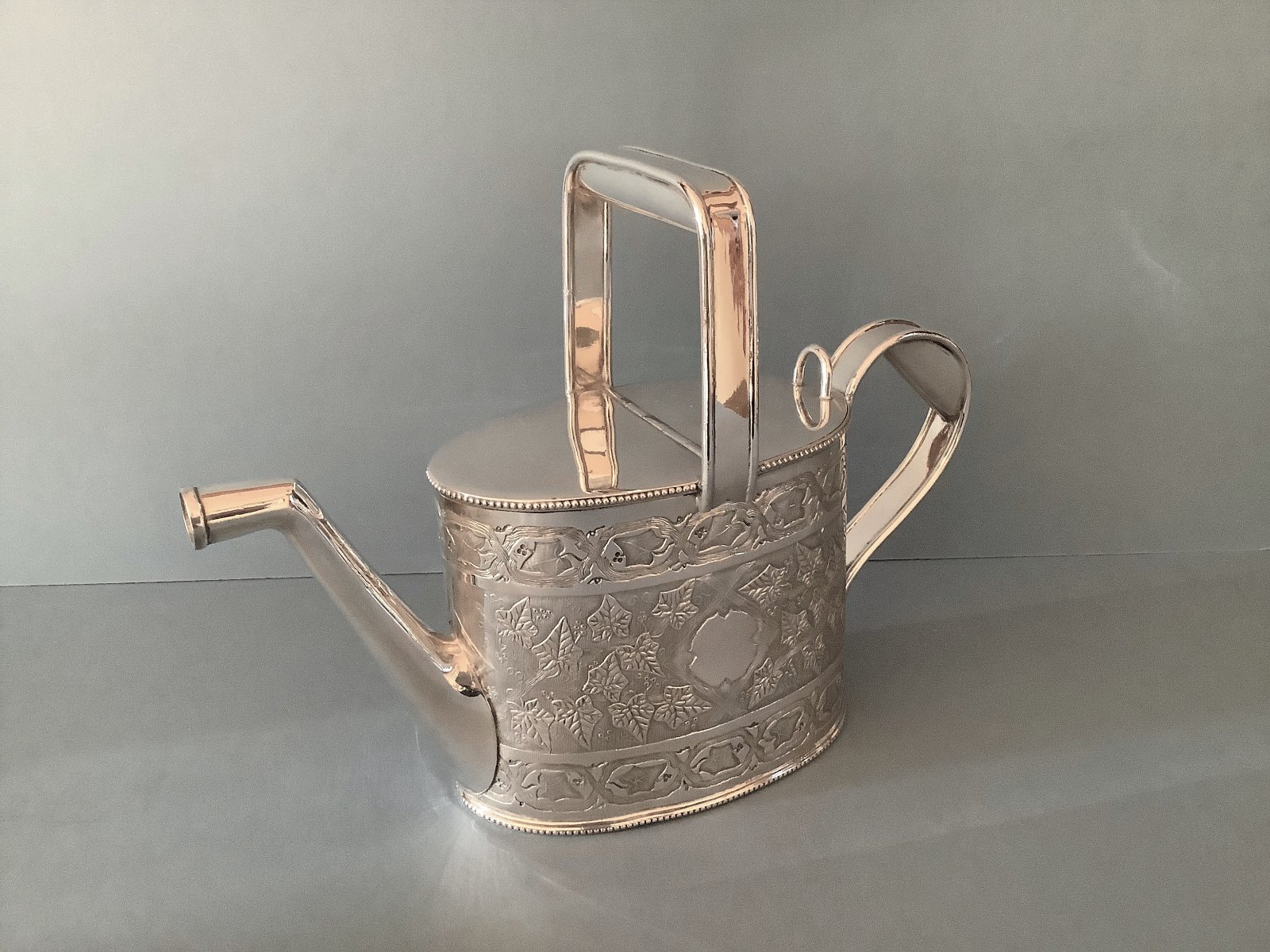 Antique Victorian Full-Sized Silver Plated Watering Can