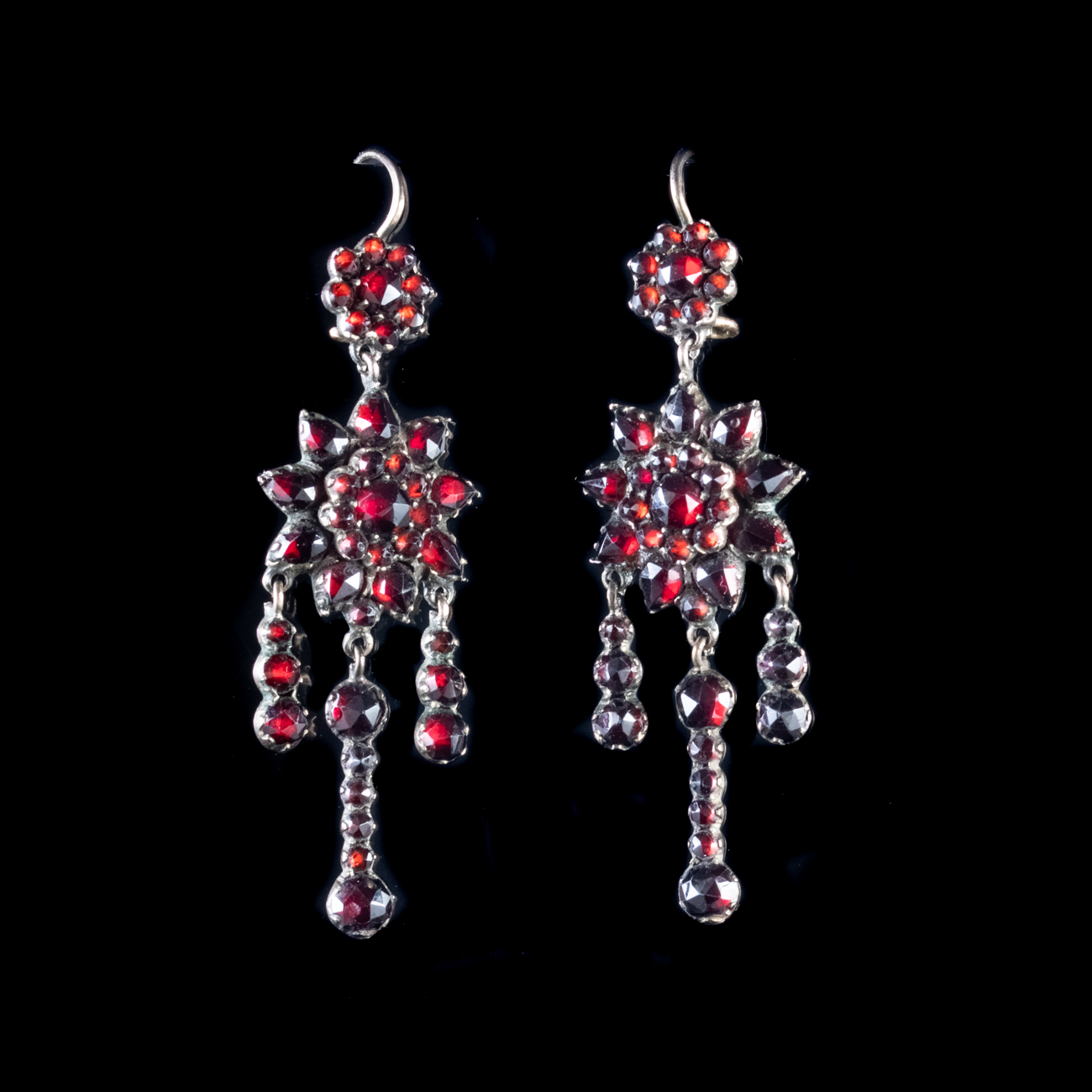 Antique Victorian Garnet Long Earrings Garnet Gold c.1890