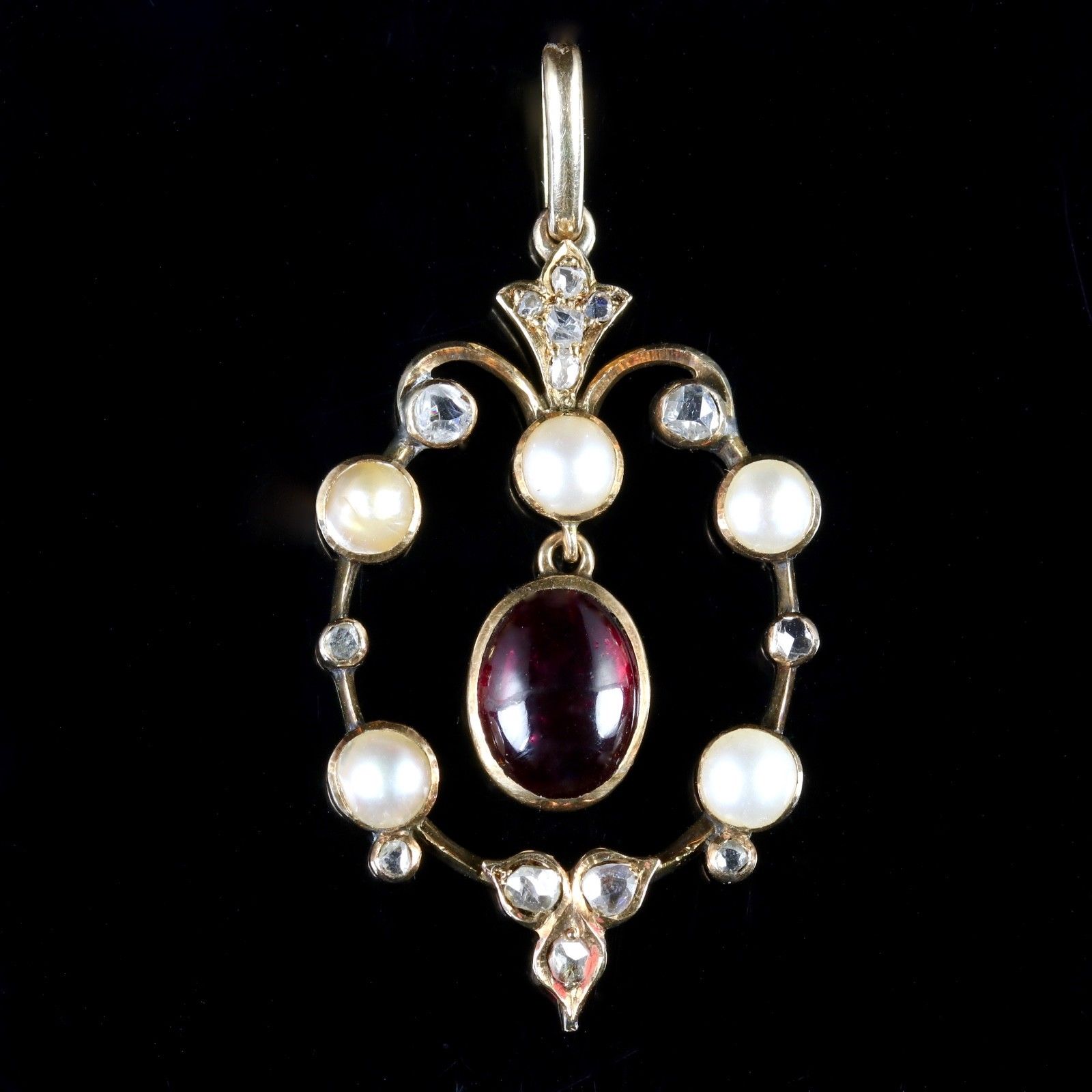 Antique Victorian Garnet Pearl Diamond Pendant 18ct Gold c.1900