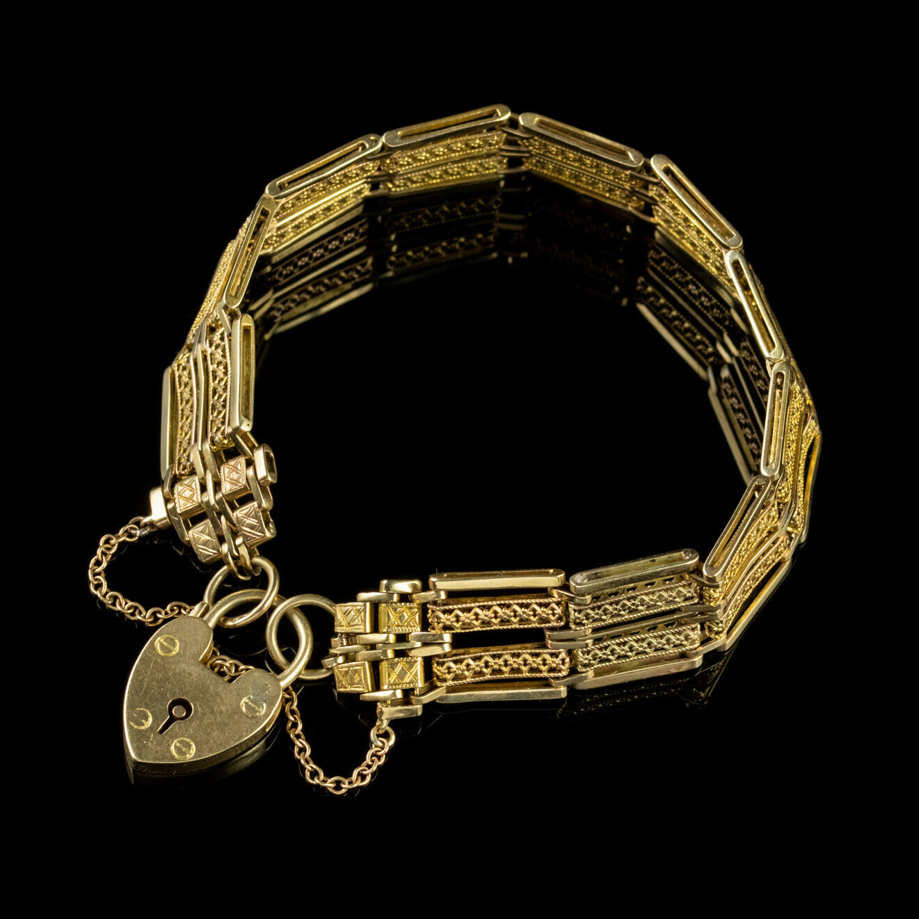 Antique Victorian Gate Bracelet 9ct Gold Heart Padlock c.1900
