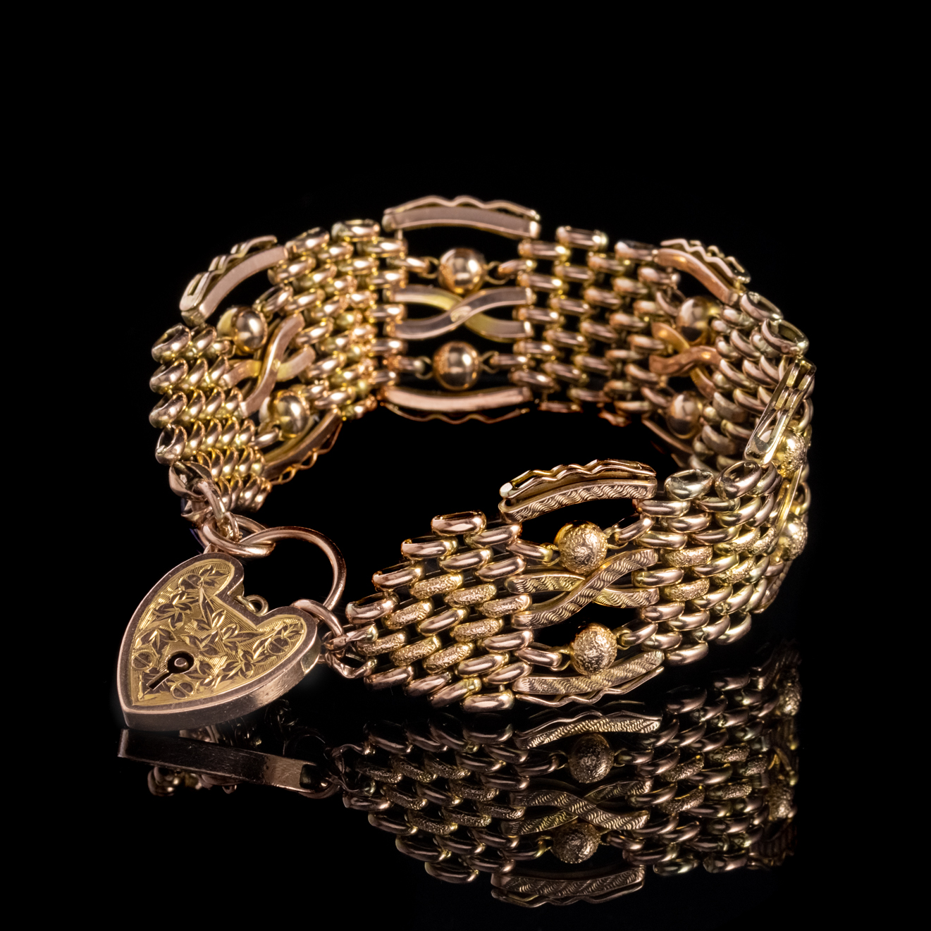 Antique Victorian Gate Bracelet 9ct Rose Gold Heart Padlock c.1880