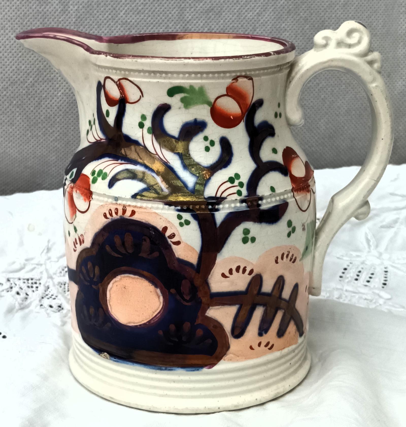 Antique Victorian Gaudy Welsh "Cherry Tree" Jug