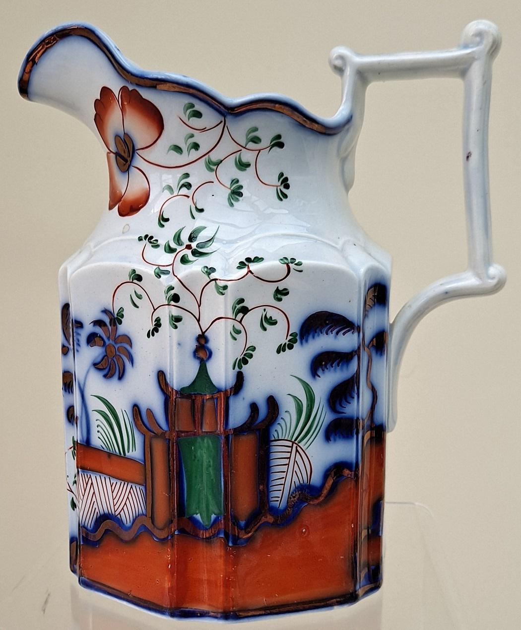 Antique Victorian Gaudy Welsh "Pagoda" Pattern Jug