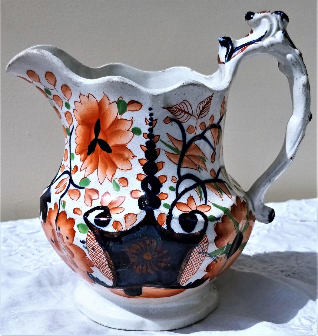 Antique Victorian Gaudy Welsh "Pagoda" Pattern Jug