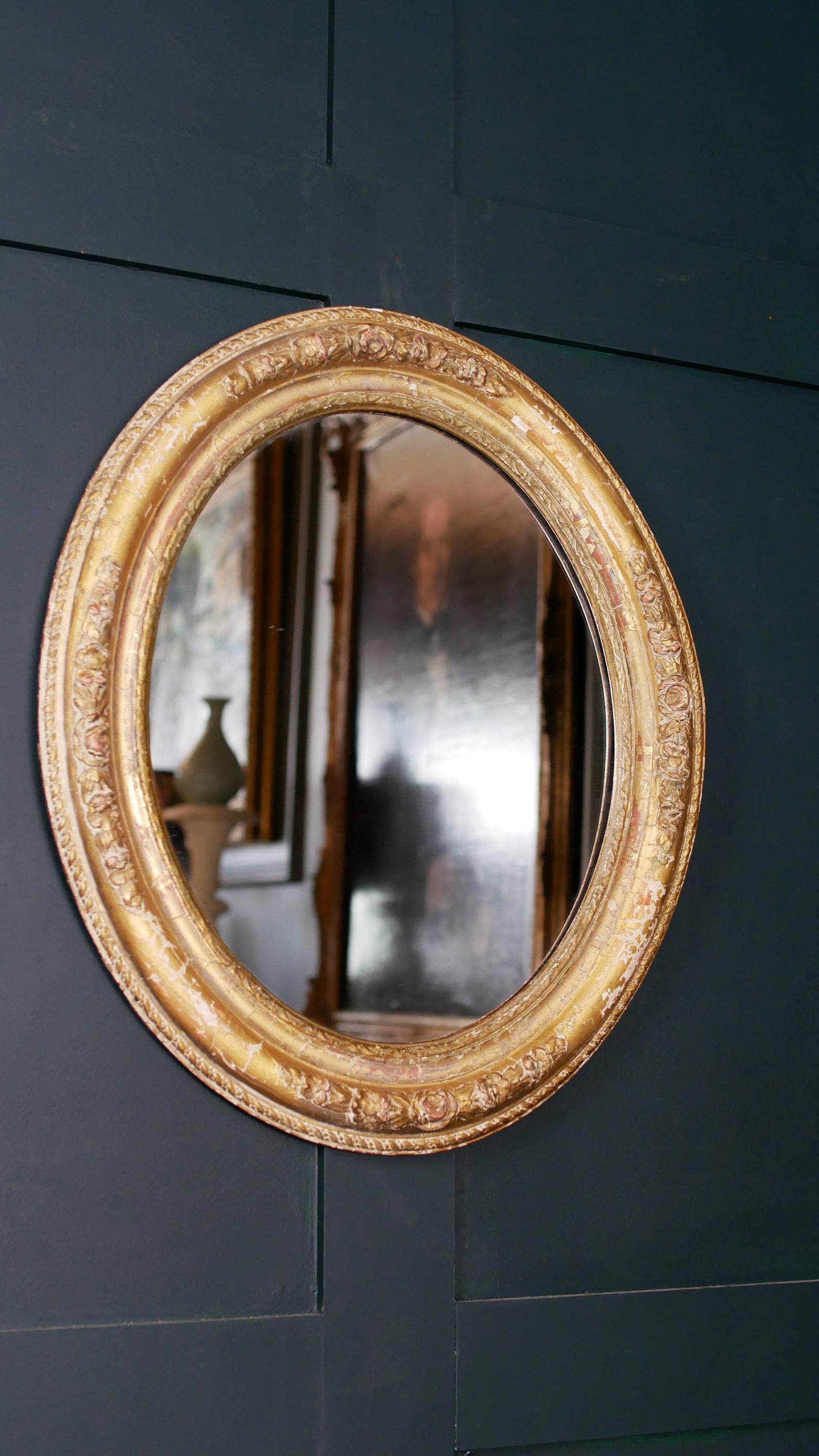 This Antique Victorian Gesso Oval Mirror – Wonderful Distressed Patina is located in Kent, United Kingdom