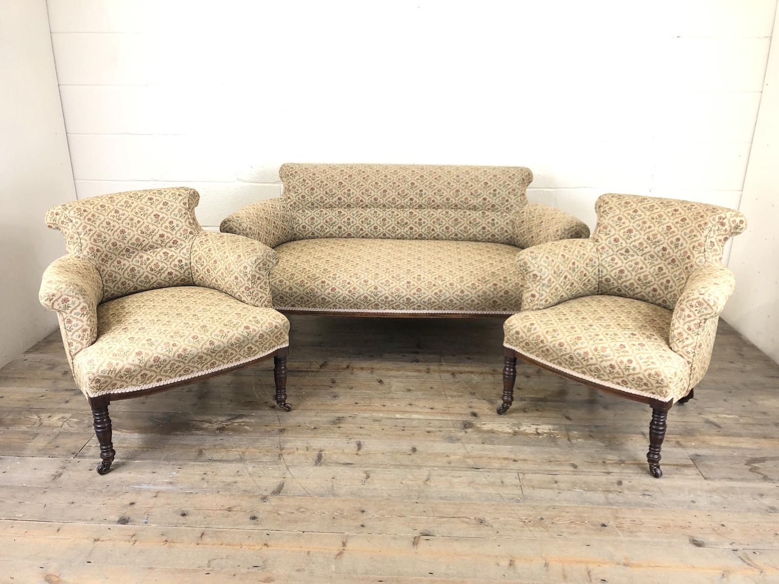 Antique Victorian Gold Floral Three Piece Suite