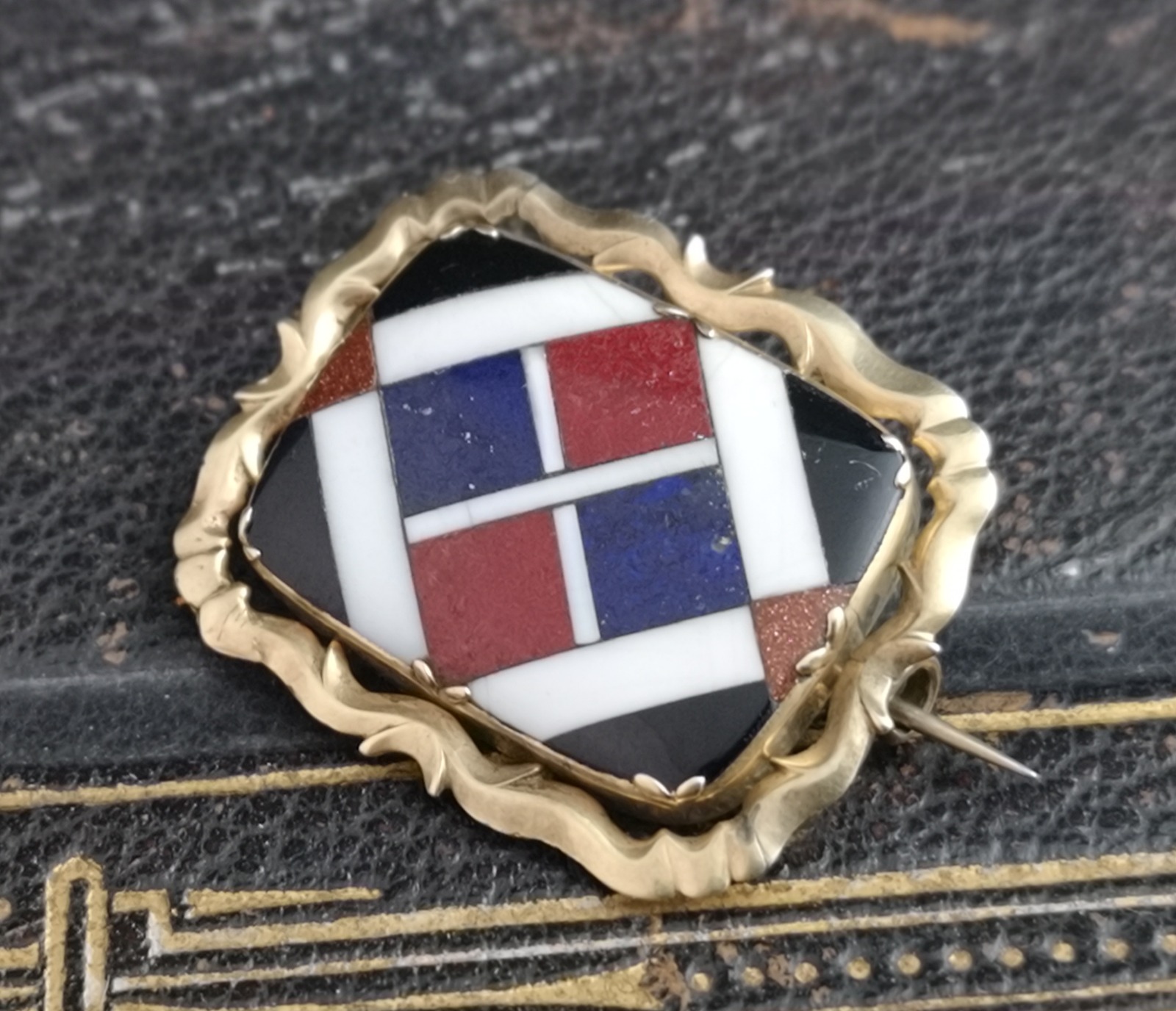 Antique Victorian Gold Pietra Dura Brooch