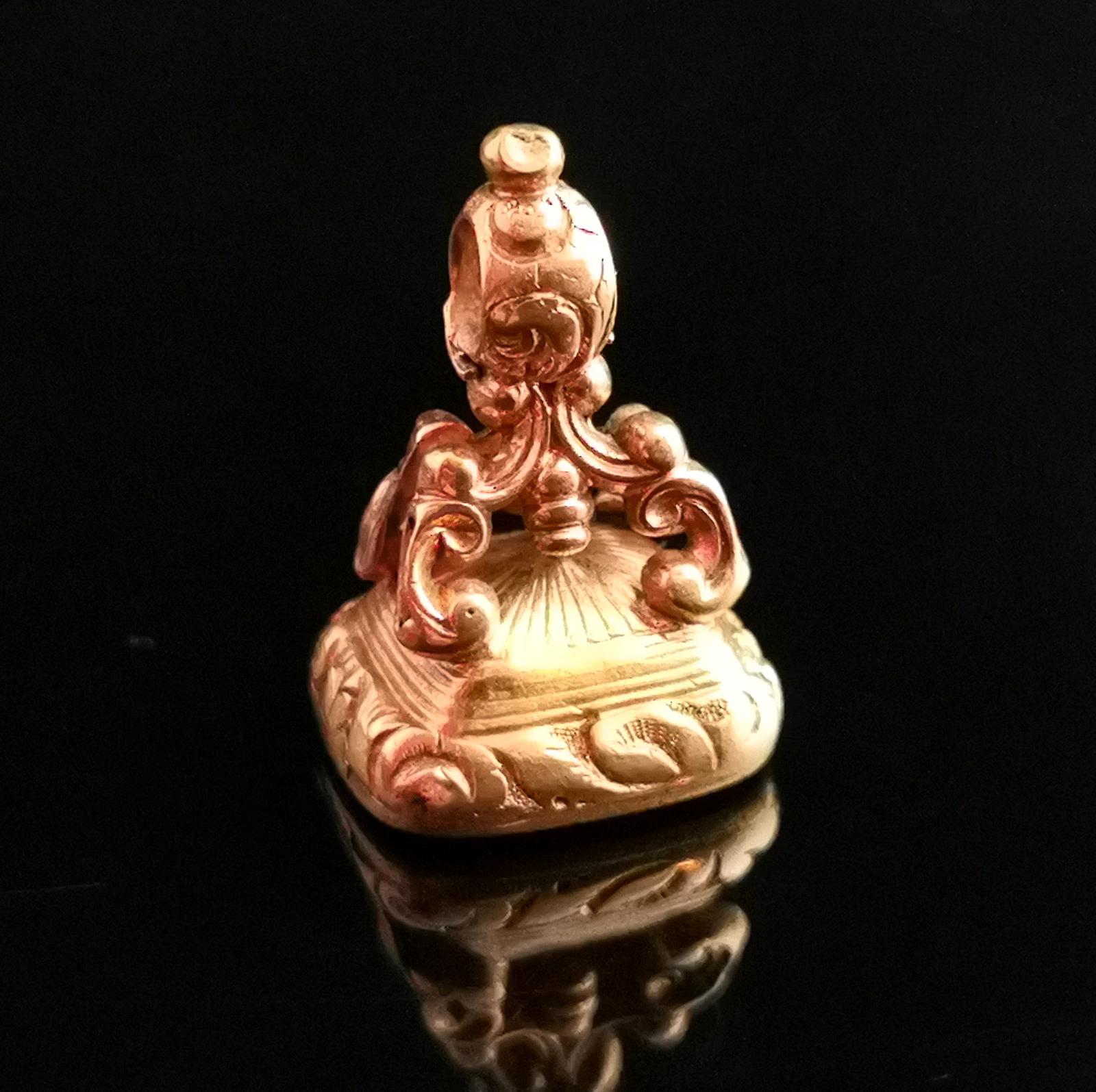 Antique Victorian Gold Plated Seal Fob, Carnelian