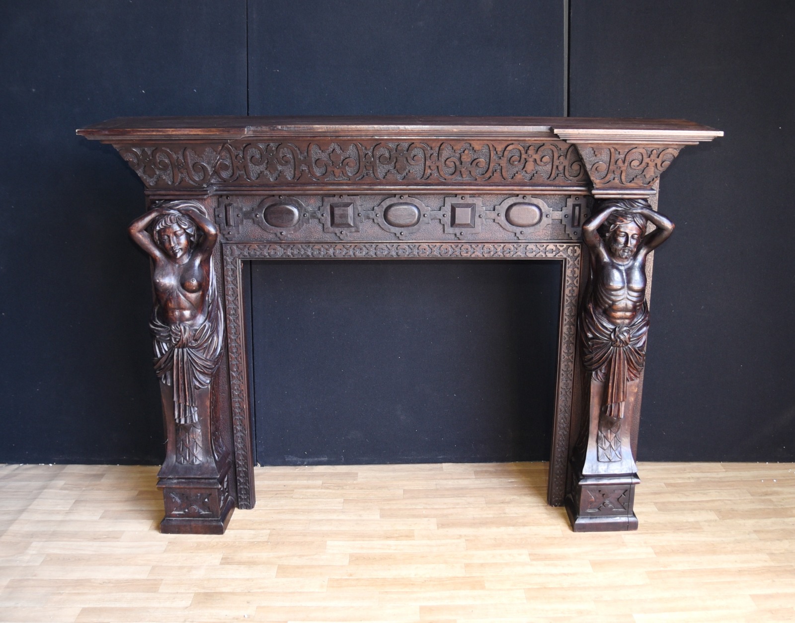 Antique Victorian Gothic Carved Fireplace Caryatids c.1880