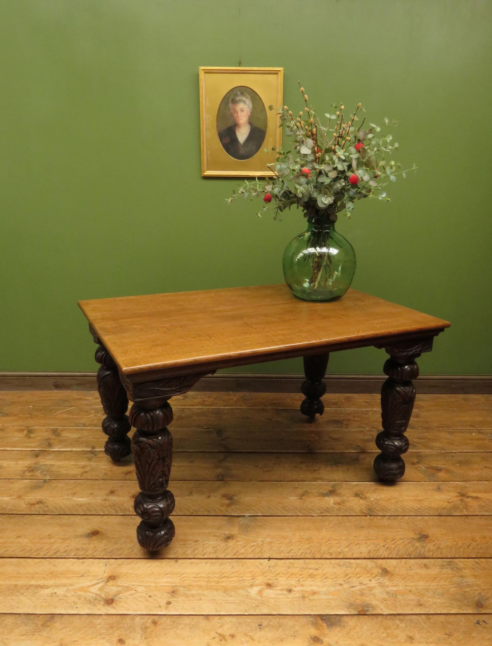 Antique Victorian Gothic Oak & Mahogany Dining or Hall Table Heavily Carved Legs