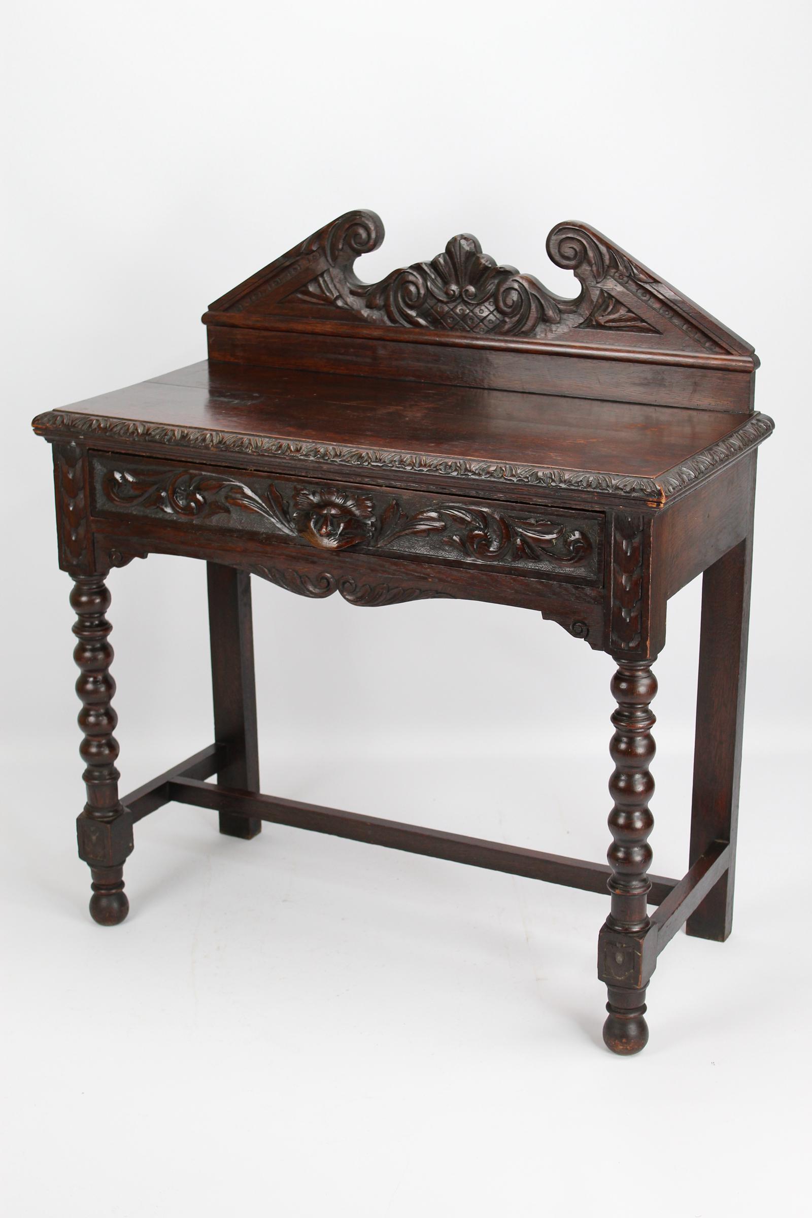 Antique Victorian Gothic Revival Oak Hall Table