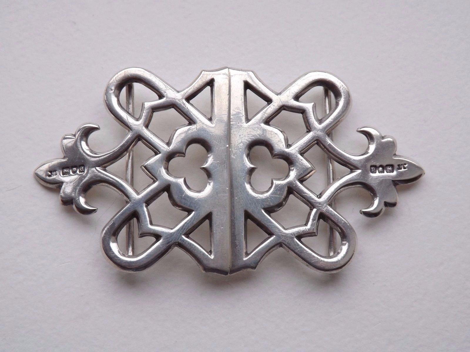 Antique Victorian Gothic Style Sterling Silver Nurses Buckle - London 1899