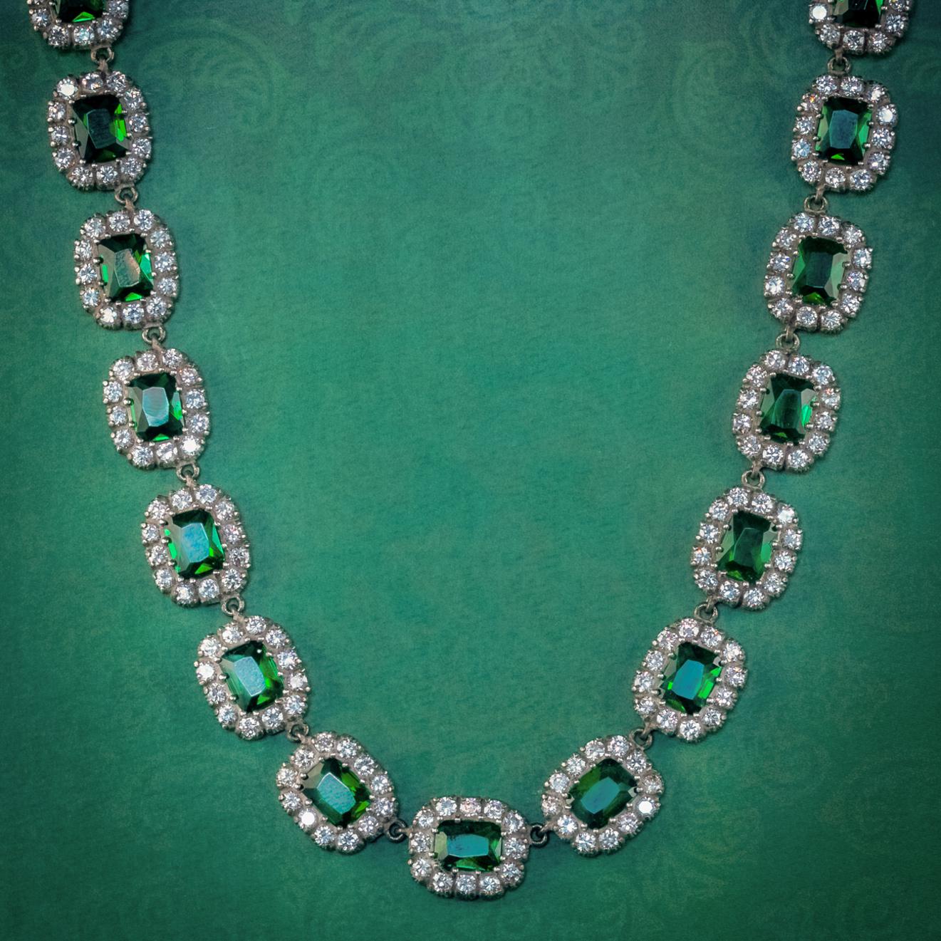 Antique Victorian Green Paste Riviere Necklace Silver c.1900