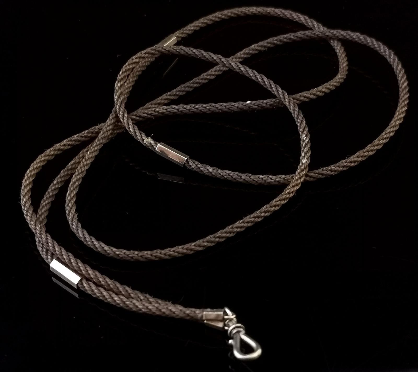 Antique Victorian Hairwork Long Chain, 9ct Gold