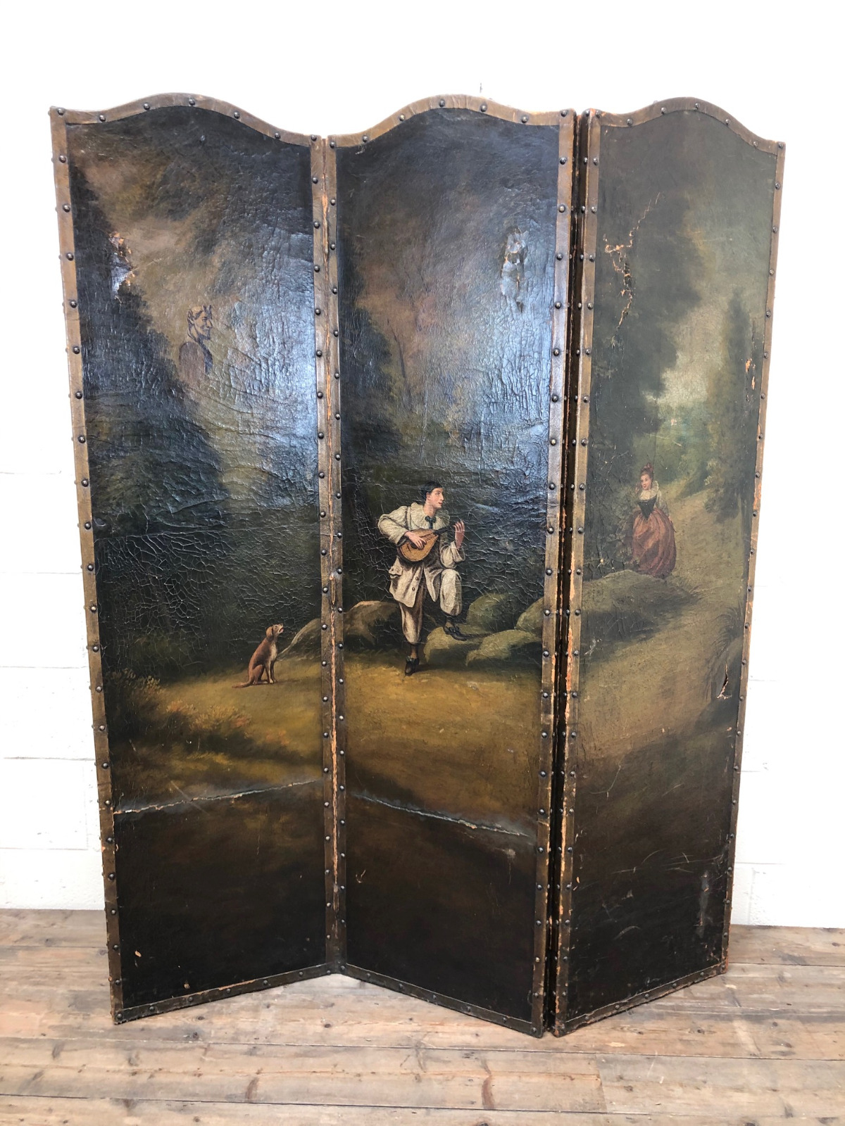 Antique Victorian Hand Painted Leather Screen, Dressing Screen or Room Divider (1 of 9)